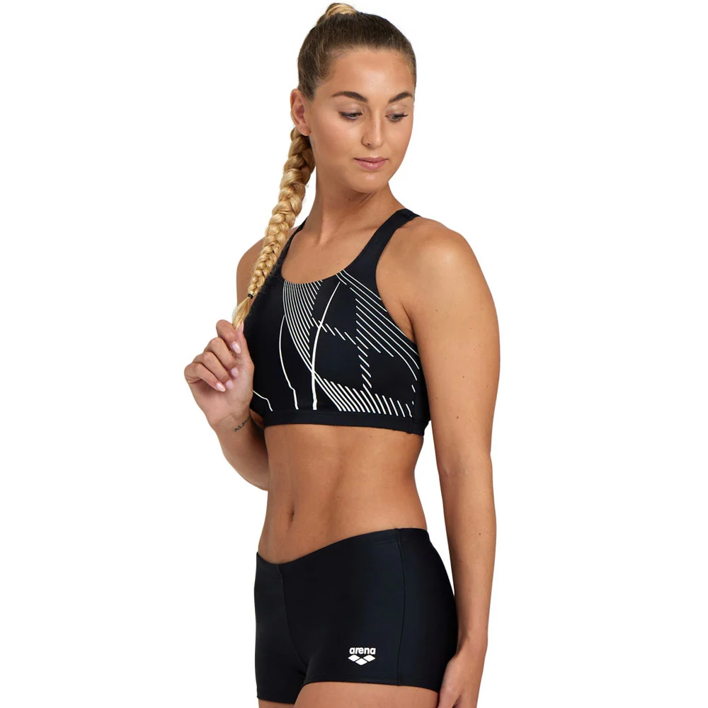 Изготовленный на 80% из переработанного полиамида, этот материал быстро сохнет, устойчив к хлору и оснащен защитой от ультрафиолета 50+, поэтому вы можете наслаждаться плаванием в помещении и на улице.